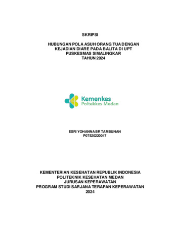 Tambunan, Esri Yohanna Br (2024) Hubungan Pola Asuh Orang Tua Dengan Kejadian Diare Pada Balita Di Upt Puskesmas Simalingkar Tahun 2024. Diploma thesis, Poltekkes Kemnkes Medan.