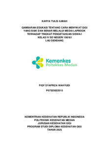 Wahyudi, Fiqy Syafriza (2025) Gambaran Edukasi Tentang Cara Menyikat Gigi Yang Baik Dan Benar Melalui Media Lapbook Terhadap Tingkat Pengetahuan Siswa/I Sd Negeri 106161 Lau Dendang. Diploma thesis, Poltekkes Kemenkes Medan.