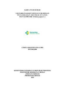 LUBIS, CINDY LOIS ESTEFANIA (2025) UJI STABILITAS BODY SCRUB (LULUR) DENGAN P E N A M B A H A N E K S T R A K E T A N O L DAUN JAMBU BIJI (Psidium guajava L.). Diploma thesis, Poltekkes Kemenkes Medan.