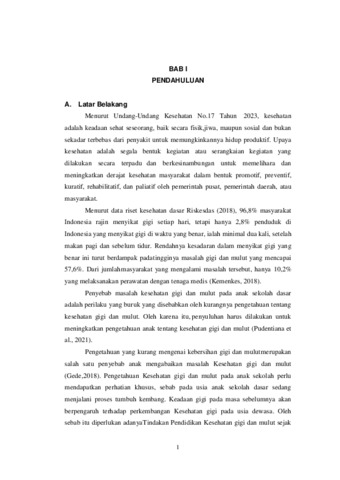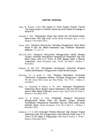 Kata kunci : Pengetahuan, Menyikat Gigi, Media Boneka Tangan
