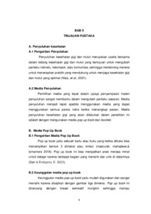 pemberian informasi pengetahuan tentang pemeliharaan Kesehatan gigi dan mulut. Pengetahuan dapat diberikan melalui upaya promosi kesehatan gigi dan mulut dengan cara melakukan penyuluhan. Media yang berisikan gambar yang menarik dapat meningkatkan efektivitas pendidikan bagi anak-anak. Media yang dipakai dalam penyuluhan sangat beragam contohnya media pop up book dan booklet.