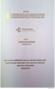 MARBUN, FASKAH RANI (2025) PERBANDINGAN ARANG AKTIF BIJI KELOR DAN BIJI ASAM JAWA MENGGUNAKAN TEKNOLOGI FILTRASI DALAM MENURUNKAN KADAR FE AIR SUMUR BOR. Diploma thesis, Poltekkes Kemenkes Medan.
