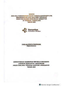 PAKPAHAN, FANI ALVIONITA (2025) ANALISIS PENCEMARAN KADAR KARBON MONOKSIDA (CO) MENGGUNAKAN GAS ANALYZER TERHADAP EMISI GAS BUANG KENDARAAN BERMOTOR DI TERMINAL KABANJAHE TAHUN 2025. Diploma thesis, Poltekkes Kemenkes Medan.