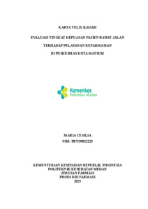 MARIA CESLIA, MARIA CESILIA (2025) KARYA TULIS ILMIAH EVALUASI TINGKAT KEPUASAN PASIEN RAWAT JALAN TERHADAP PELAYANAN KEFARMASIAN DI PUSKESMAS KOTA MATSUM. Diploma thesis, Poltekkes Kemenkes Medan.