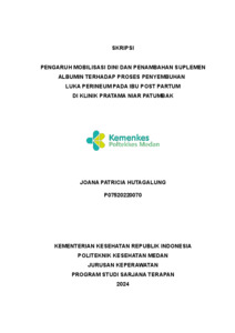 Hutagalung, Joana Patricia (2024) Pengaruh Mobilisasi Dini Dan Penambahan Suplemen Albumin Terhadap Proses Penyembuhan Luka Perineum Pada Ibu Post Partum Di Klinik Pratama Niar Patumbak. Diploma thesis, Poltekkes Kemnkes Medan.