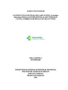 MILA SARMILA, MILA SARMILA (2025) UJI EFEKTIVITAS EKSTRAK BIJI LABU KUNING (Cucurbita Moschata) SEBAGAI ANTHELMINTIK ALAMI TERHADAP CACING LUMBRICUS RUBELLUS SECARA IN VITRO. Diploma thesis, Poltekkes Kemenkes Medan.