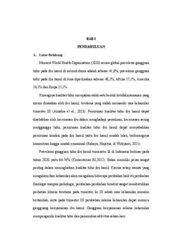 Trimester ketiga kehamilan seringkali ditandai dengan gangguan tidur akibat perubahan fisiologis dan psikologis. Kualitas tidur yang buruk dapat berdampak negatif terhadap kesehatan ibu dan janin. Self hypnosis merupakan salah satu