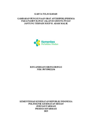 SIRINGORINGO, RINI ANDRIANI (2025) GAMBARAN PENGGUNAAN OBAT ANTIHIPERLIPIDEMIA PADA PASIEN RAWAT JALAN DI GEDUNG PUSAT JANTUNG TERPADU RSUP H. ADAM MALIK. Diploma thesis, Poltekkes Kemenkes Medan.