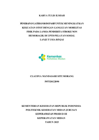 Situmorang, Claudya Mandasari (2025) Penerapan Latihan Rompasif Untuk Meningkatkan Kekuatan Otot Dengan Gangguan Mobilitas Fisik Pada lansia Penderita Stroke Non Haemoragic Di UPTD Pelayanan Sosian lanjut Usia Binjai. Diploma thesis, Poltekkes Kemnkes Medan.