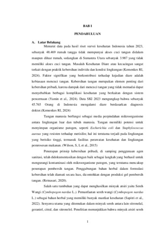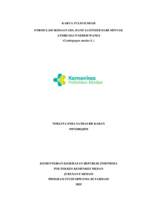 BR KABAN, NOELITA EMIA SATRAS (2025) FORMULASI SEDIAAN GEL HAND SANITIZER DARI MINYAK ATSIRI DAUN SEREH WANGI (Cymbopogon nardus L.). Diploma thesis, Poltekkes Kemenkes Medan.