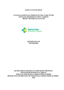 Dio, Irfansyah (2025) ANALISA KANDUNGAN FORMALIN PADA TAHU PUTIH DI PASAR TRADISIONAL DESA TANDEM HILIR I METODE KUALITATIF. Diploma thesis, Poltekkes Kemenkes Medan.