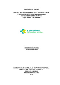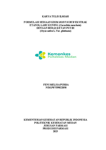 PURBA, FENI MELISA (2025) FORMULASI SEDIAAN KRIM BODY SCRUB EKSTRAK ETANOL LABU KUNING (Cucurbita moschata) DENGAN BERAS KETAN PUTIH (Oryza sativa L.Var. glutinosa). Diploma thesis, Poltekkes Kemenkes Medan.