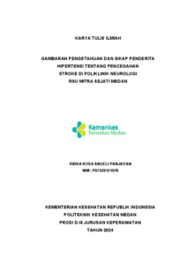 Panjaitan, Ribka Rosa Angeli (2024) Gambaran Pengetahuan Dan Sikap Penderita Hipertensi Tentang Pencegahan Stroke Di Poliklinik Neurologi Rsu Mitra Sejati Medan. Diploma thesis, Poltekkes Kemnkes Medan.