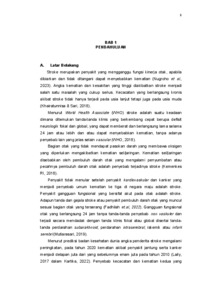 Latar Belakang : Stroke adalah suatu keadaan dimana ditemukan tanda-tanda