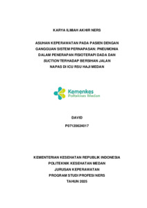 David, David (2025) Asuhan Keperawatan Pada Pasien Dengan Gangguan Sistem Pernapasan: Pneumonia Dalam Penerapan Fisioterapi Dada Dan Suction Terhadap Bersihan Jalan Napas Di Icu Rsu Haji Medan. Diploma thesis, Poltekkes Kemnkes Medan.