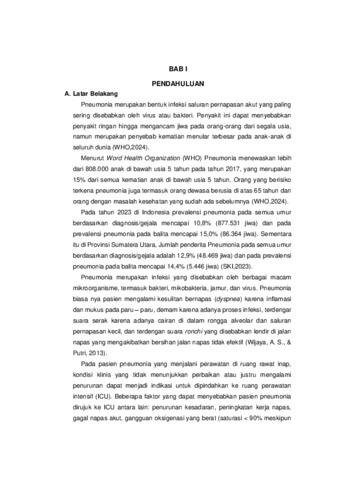 Latar belakang: Pneumonia merupakan salah satu infeksi saluran pernapasan