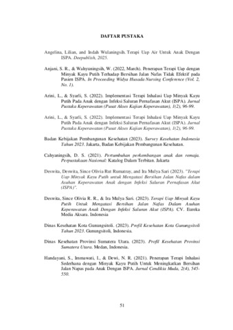 Kata Kunci : ISPA, balita, bersihan jalan napas tidak efektif, terapi uap, minyak kayu putih.