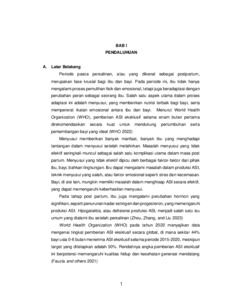 Latar Belakang: Masa post partum merupakan periode krusial dalam proses