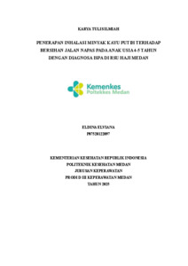 Elviana, Eldiana (2025) Penerapan Inhalasi Minyak Kayu Putih Terhadap Bersihan Jalan Napas Pada Anak Usia 4-5 Tahun Dengan Diagnosa Ispa Di Rsu Haji Medan. Diploma thesis, Poltekkes Kemnkes Medan.