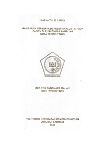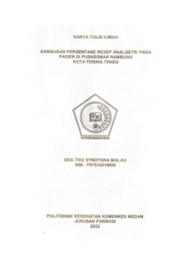 MALAU, DEA TRIX SYNDYANA MALAU (2022) Gambaran Persentase Resep Analgetik pada Pasien di Puskesmas Rambung Kota Tebing Tinggi. Diploma thesis, Poltekkes Kemenkes Medan.