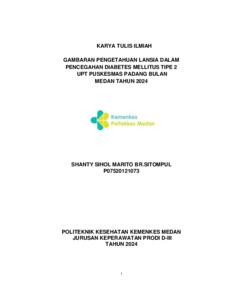 Sitompul, Shanty Sihol Marito Br. (2024) Gambaran Pengetahuan Lansia Dalam Pencegahan Diabetes Mellitus Tipe 2 Upt Puskesmas Padang Bulan Medan Tahun 2024. Diploma thesis, Poltekkes Kemnkes Medan.