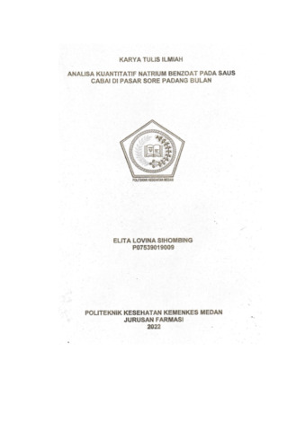 Sihombing, Elita Lovina Sihombing (2022) ANALISA KUANTITATIF NATRIUM BENZOAT PADA SAUS CABAI DI PASAR SORE PADANG BULAN. Diploma thesis, Poltekkes Kemenkes Medan.