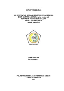 SIREGAR, GEBY SIREGAR (2022) Uji Efektivitas Sediaaan Salep Ekstrak Etanol Daun Jarak Pagar (Jatropha curcas L.) terhadap penyembuhan luka sayat pada Marmut (Cavia porcellus). Diploma thesis, Poltekkes Kemenkes Medan.