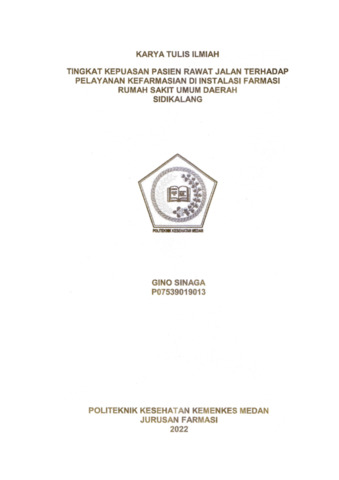 SINAGA, GINO SINAGA (2022) TINGKAT KEPUASAN PASIEN RAWAT JALAN TERHADAP PELAYANAN KEFARMASIAN DI INSTALASI FARMASI RUMAH SAKIT UMUM DAERAH SIDIKALANG. Diploma thesis, Poltekkes Kemenkes Medan.