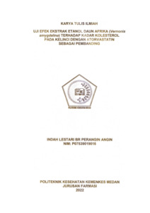 Br. Perangin Angin, Indah Lestari Br. Perangin Angin (2022) UJI EFEK EKSTRAK ETANOL DAUN AFRIKA (Vernonia amygdalina) TERHADAP KADAR KOLESTROL PADA KELINCI DENGAN ATORVASTATIN SEBAGAI PEMBANDING. Diploma thesis, Poltekkes Kemenkes Medan.