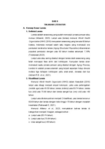 Latar Belakang : Lansia merupakan kelompok rentan terhadap penyakit