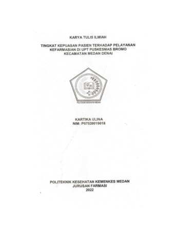 KARTIKA ULINA, KARTIKA ULINA (2022) TINGKAT KEPUASAN PASIEN TERHADAP PELAYANAN KEFARMASIAN DI UPT PUSKESMAS BROMO KECAMATAN MEDAN DENAI. Diploma thesis, Poltekkes Kemenkes Medan.