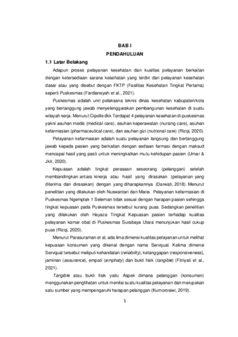 Kata kunci : Kepuasan, Pasien, Pelayanan, Kefarmasian, Puskesmas