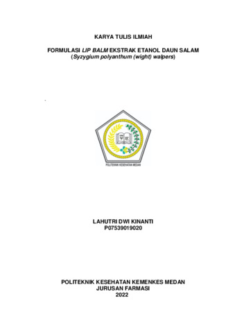 LAHUTRI DWI KINANTI, LAHUTRI DWI KINANTI (2022) FORMULASI LIP BALM EKSTRAK ETANOL DAUN SALAM (Syzygium polyanthum (wight) walpers). Diploma thesis, Poltekkes Kemenkes Medan.