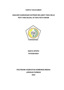 SITEPU, NADYA SITEPU (2022) ANALISIS KANDUNGAN SIKLAMAT PADA SELAI ROTI YANG DIJUAL DI TOKO ROTI HARUM. Diploma thesis, Poltekkes Kemenkes Medan.