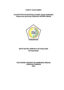 HUTAGALUNG, SEPTI RATNA CEMPAKA HUTAGALUNG (2022) UJI EFEKTIVITAS EKSTRAK ETANOL DAUN SURUHAN (Peperomia pellucida) SEBAGAI ANTIINFLAMASI. Diploma thesis, Poltekkes Kemenkes Medan.