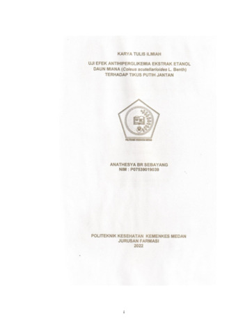 BR SEBAYANG, ANATHESYA BR SEBAYANG (2022) UJI EFEK ANTIHIPERGLIKEMIA EKSTRAK ETANOL DAUN MIANA (Coleus scutellarioides L. Benth) TERHADAP TIKUS PUTIH JANTAN. Diploma thesis, Poltekkes Kemenkes Medan.