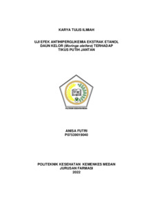 ANISA FUTRI, ANISA FUTRI (2022) UJI EFEK ANTIHIPERGLIKEMIA EKSTRAK ETANOL DAUN KELOR (Moringa oleifera) TERHADAP TIKUS PUTIH JANTAN. Diploma thesis, Poltekkes Kemenkes Medan.