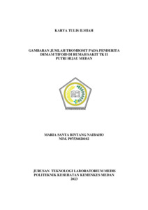 Naibaho, Maria Santa Bintang (2023) GAMBARAN JUMLAH TROMBOSIT PADA PENDERITA DEMAM TIFOID DI RUMAH SAKIT TK II PUTRI HIJAU MEDAN. Diploma thesis, Poltekkes Kemenkes Medan.