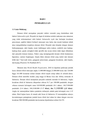 Latar belakang : Demam tifoid adalah penyakit infeksi sistemik yang disebabkan oleh