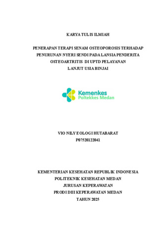 Hutabarat, Vio Nily Eologi (2025) Penerapan Terapi Senam Osteoporosis Terhadap Penurunan Nyeri Sendi Pada Lansia Penderita Osteoartritis Di Uptd Pelayanan Lanjut Usia Binjai. Diploma thesis, Poltekkes Kemnkes Medan.