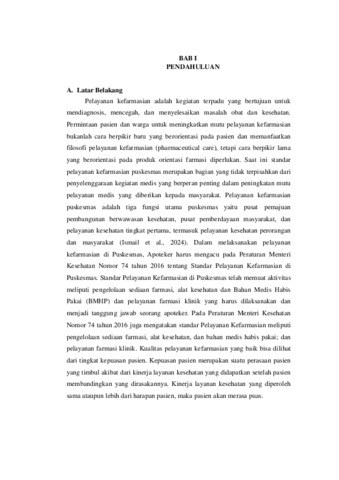 Kata kunci : Kepuasan Pasien, Pelayanan Kefarmasian