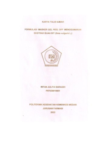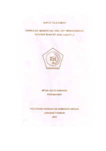 SARAGIH, INTAN JULITA SARAGIH (2022) FORMULAS MASKER GEL PEEL OFF MENGGUNAKAN EKSTRAK BUAH BIT (Beta vulgaris L.). Diploma thesis, Poltekkes Kemenkes Medan.
