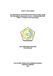 SIBARANI, JOSH PERNANDO SIBARANI (2022) UJI EFEKTIVITAS ANTIOKSIDAN EKSTRAK ETANOL DAUN BAYAM MERAH (Amarantus tricolor L.) DENGAN METODE DPPH (1,1 Diphenyl-2-picrylhydrazyl). Diploma thesis, Poltekkes Kemenkes Medan.