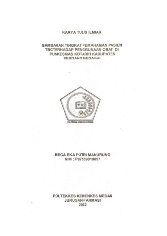 MANURUNG, MEGA EKA PUTRI MANURUNG (2022) GAMBARAN TINGKAT PEMAHAMAN PASIEN TBC TERHADAP PENGGUNAAN OBAT DI PUSKESMAS KOTARIH KABUPATEN SERDANG BEDAGAI. Diploma thesis, Poltekkes Kemenkes Medan.