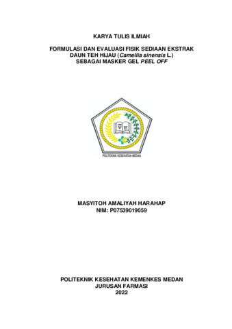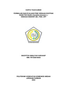 HARAHAP, MASYITOH AMALIYAH HARAHAP (2022) FORMULASI DAN EVALUASI FISIK SEDIAAN EKSTRAK DAUN TEH HIJAU (Camellia sinensis L.) SEBAGAI MASKER GEL PEEL OFF. Diploma thesis, Poltekkes Kemenkes Medan.