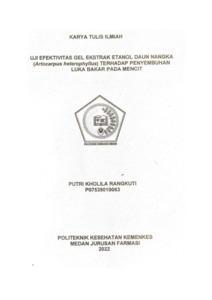 Rangkuti, Putri Kholila Rangkuti (2022) UJI EFEKTIVITAS EKSTRAK ETANOL DAUN NANGKA (Artocarpus heterophyllus) TERHADAP PENYEMBUHAN LUKA BAKAR PADA MENCIT. Diploma thesis, Poltekkes Kemenkes Medan.