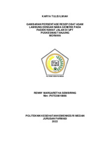 SEMBIRING, RENNY MARGARETHA SEMBIRING (2022) GAMBARAN PERSENTASE RESEP OBAT ASAM LAMBUNG DENGAN NAMA GENERIK PADA PASIEN RAWAT JALAN DI UPT PUSKESMAS TANJUNG MORAWA. Diploma thesis, Poltekkes Kemenkes Medan.