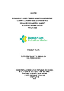 SIMBOLON, PUTRI DEWI EARLYTA (2025) PENGARUH VARIASI CAMPURAN KOTORAN SAPI DAN SAMPAH SAYURAN TERHADAP PRODUKSI BIOGAS DI KECAMATAN BANDAR KABUPATEN SIMALUNGUN TAHUN 2025. Diploma thesis, Poltekkes Kemenkes Medan.