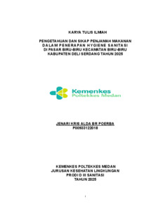 Poerba, Jenari Kris Alda Br (2025) PENGETAHUAN DAN SIKAP PENJAMAH MAKANAN DALAM PENERAPAN HYGIENE SANITASI DI PASAR BIRU-BIRU KABUPATEN DELI SERDANG TAHUN 2025. Diploma thesis, Poltekkes Kemenkes Medan.