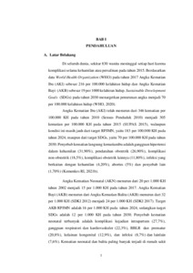 Latar Belakang : Menurut Data WHO diseluruh dunia, sekitar 830 wanita meninggal setiap hari karena komplikasi selama kehamilan atau persalinan pada tahun 2015. Berdasarkan data World Health Organization (WHO) pada tahun 2017 Angka Kematian Ibu (AKI) sebesar 216 per 100.000 kelahiran hidup dan Angka Kematian Bayi (AKB) sebesar 19 per 1000